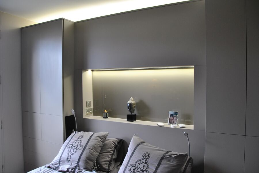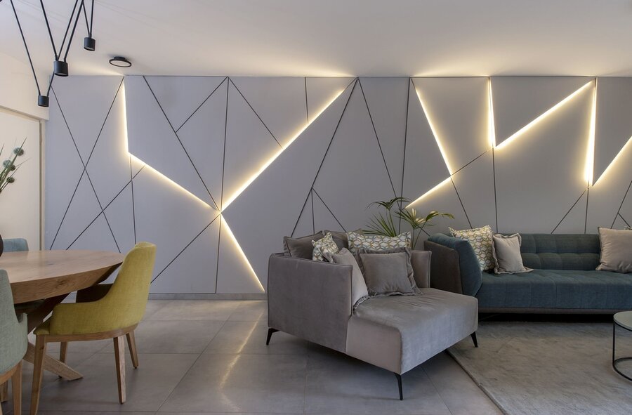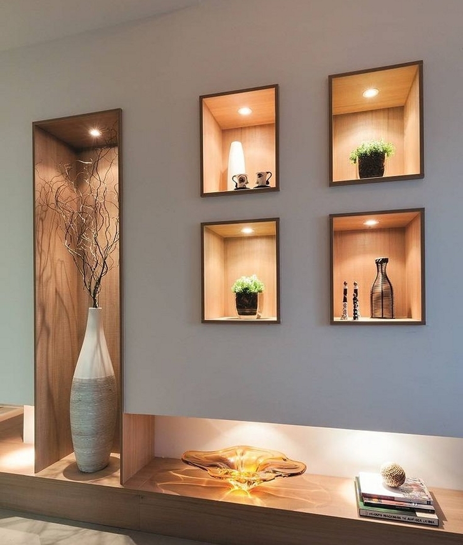 Использование света в таких углублениях необходимо, если вы хотите подчеркнуть особенность геометрии стены или предметы, стоящие в ней.