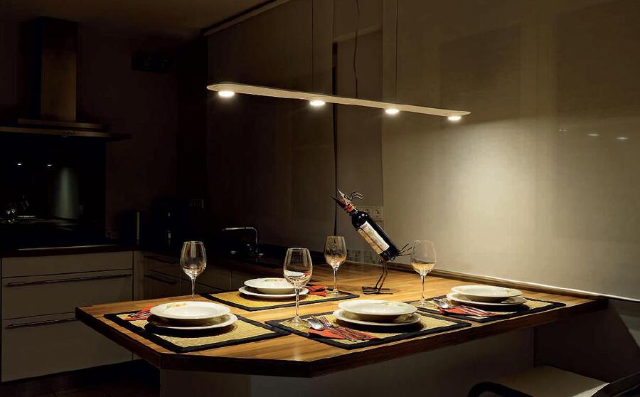 В спальнях диммируемые led-лампы наиболее популярны в прикроватных светильниках. Мягкий тусклый свет может служить в качестве ночника. На кухне диммером можно оснастить подсветку рабочей зоны. При приготовлении пищи светильник включают на полную мощность, тогда как для небольших бытовых манипуляций, заваривание чая или утреннего кофе, уместно использование приглушенного света.