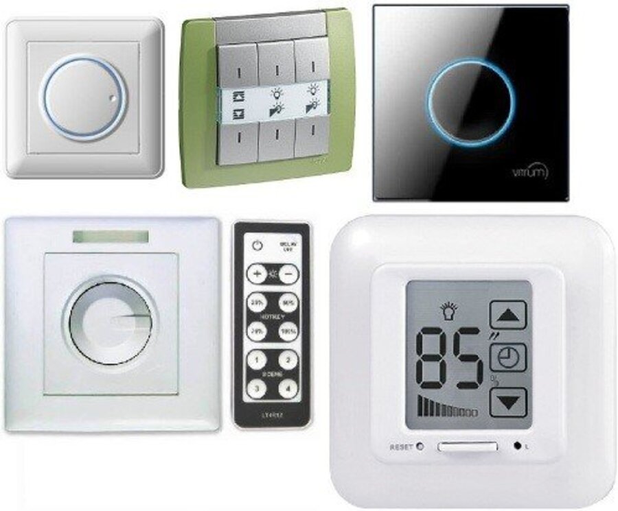 Широкий ассортимент диммеров позволяет подключить не только поворотные или клавишные варианты, но и обеспечить дистанционное управление светом.