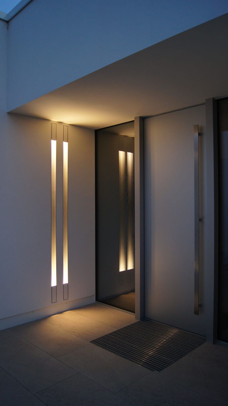 Для безопасного выхода из здания возле входных групп и дверей также рекомендуется расположить источники света. Яркость прибора должна быть достаточной для того, чтобы воспользоваться ключом, запирающим устройством и дверной ручкой.