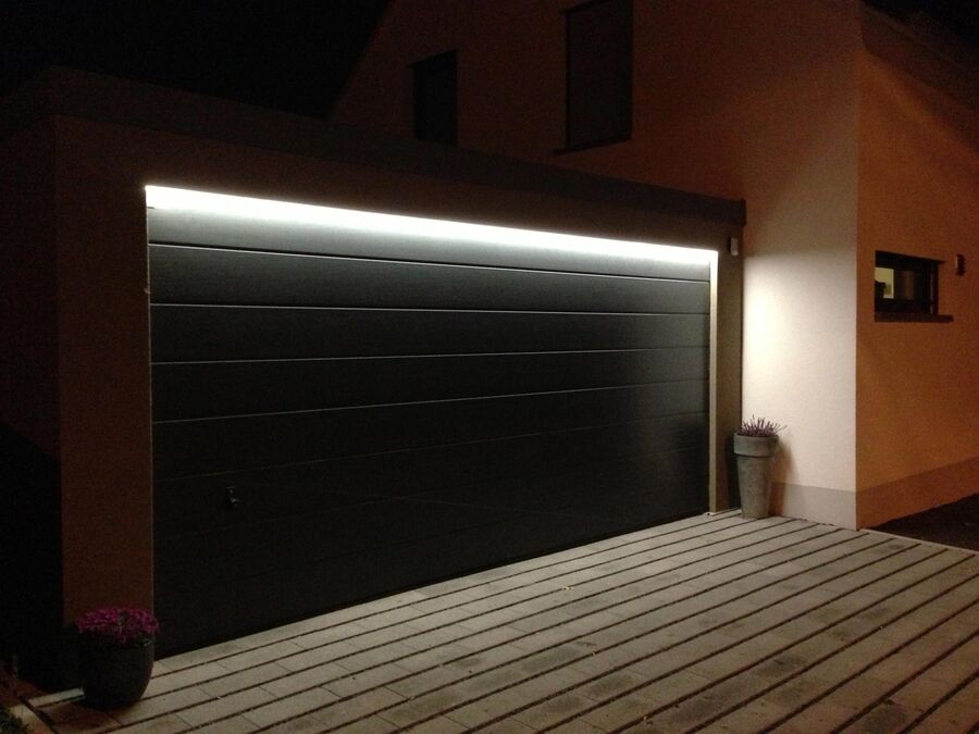 Здесь разумно использовать наиболее надежные аккумуляторы, а потому подключайте светильники для данной территории к резервному генератору. Аварийное освещение гаражных ворот и входной группы существенно упростит эвакуацию и парковку автотранспорта.