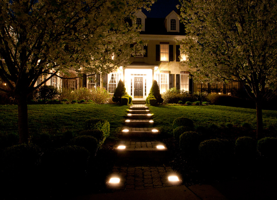 Чтобы территория вокруг загородного дома не осталась в темноте в случае аварийной ситуации, позаботьтесь об установлении на участке подсветки.