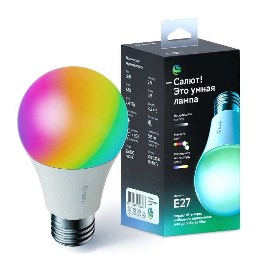 Голосовой помощник Салют поможет в управлении лампочкой со смартфона или другого программного устройства. Кроме того, прибор идеально совместим с системой умного дома.