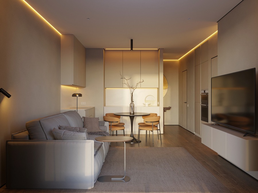 Тем самым вы зонируете пространство, делая каждую территорию более обособленной за счет наличия индивидуальной подсветки.