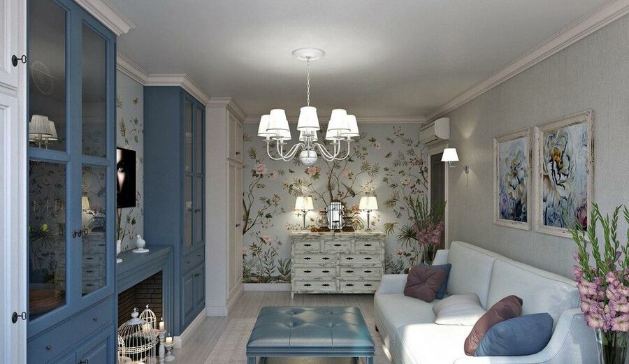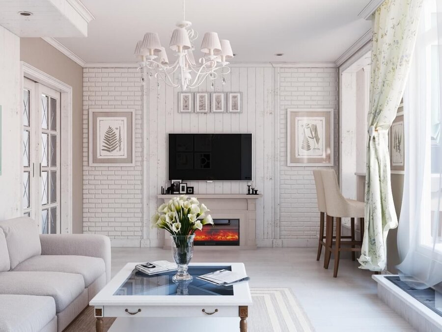 При комплектовании светильников остановитесь с выбором на источниках с невысокими показателями по шкале Кельвина. Диапазон от 2700 до 3000 идеально подойдет для уютного прованса. Для центрального осветительного прибора в гостиной можно позволить лампочки нейтрального света, температура которых не должна быть выше 3500 Кельвинов.