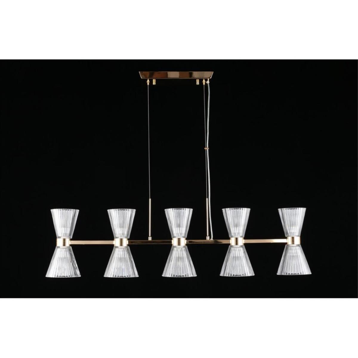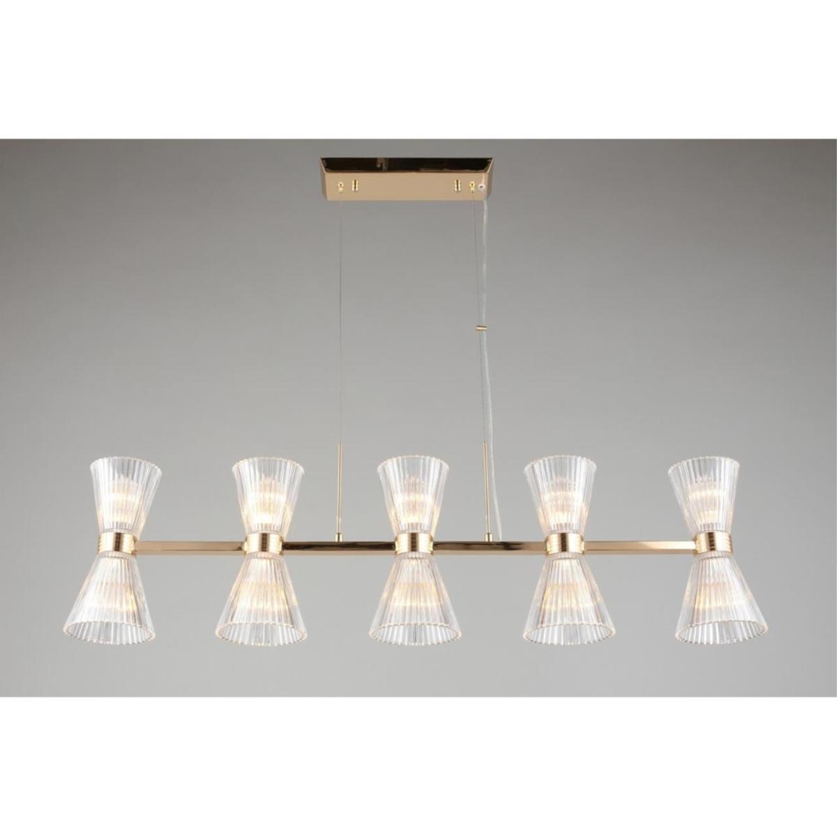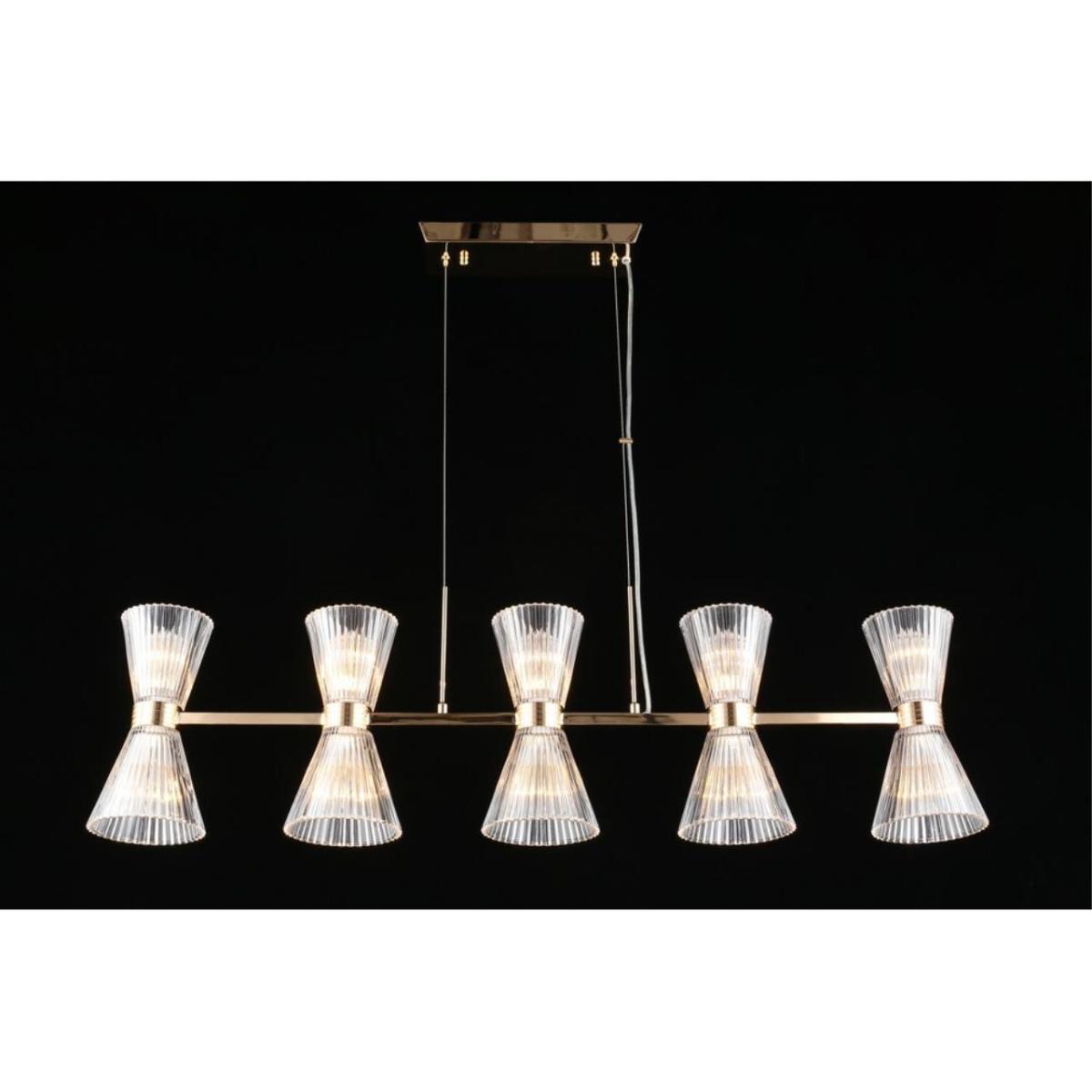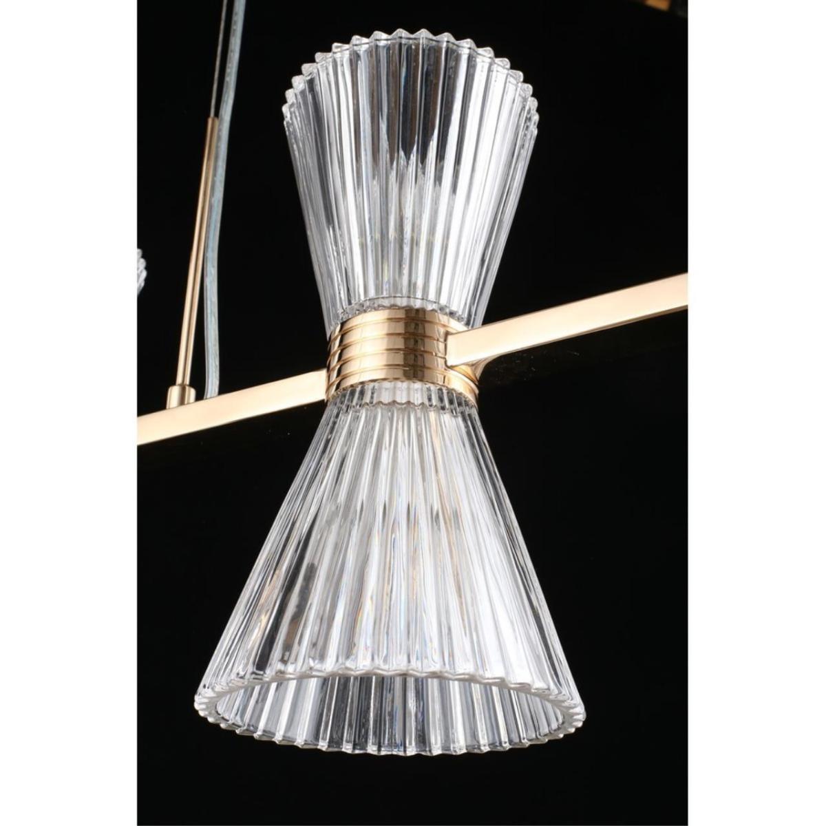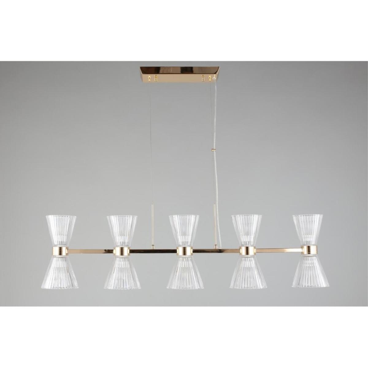 Aployt специализируется на декоративных светильниках с вниманием к деталям и качеству отделки, а серия Elinor отражает актуальный минимализм и уверенную работу со стеклом и металлом. Прозрачные конусные плафоны подчёркивают мерцание ламп и создают визуальную лёгкость, золото арматуры поддерживает тёплую атмосферу.