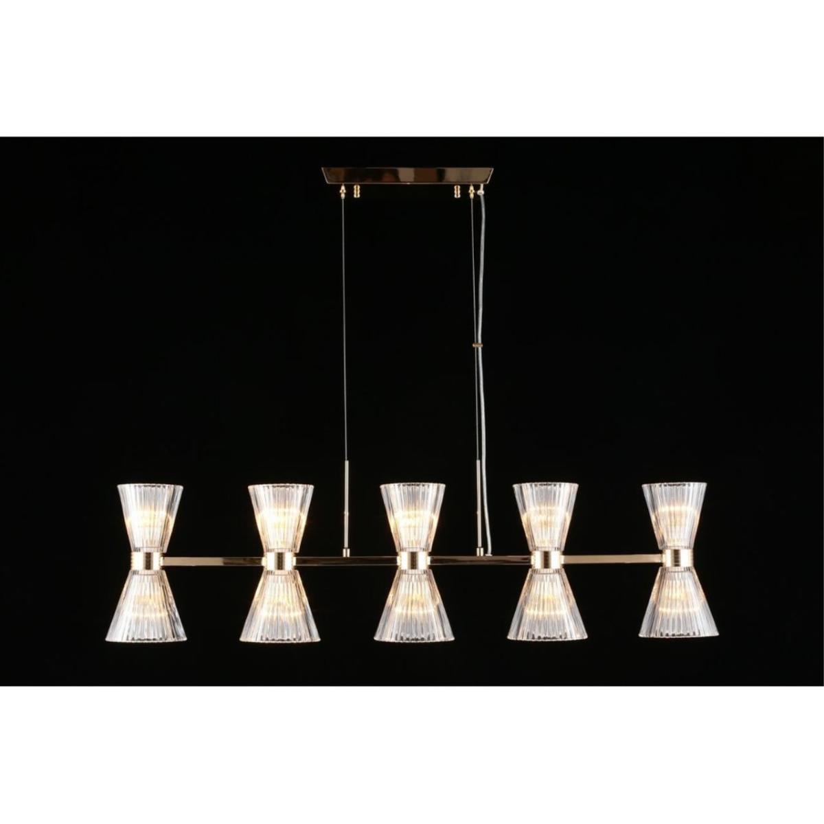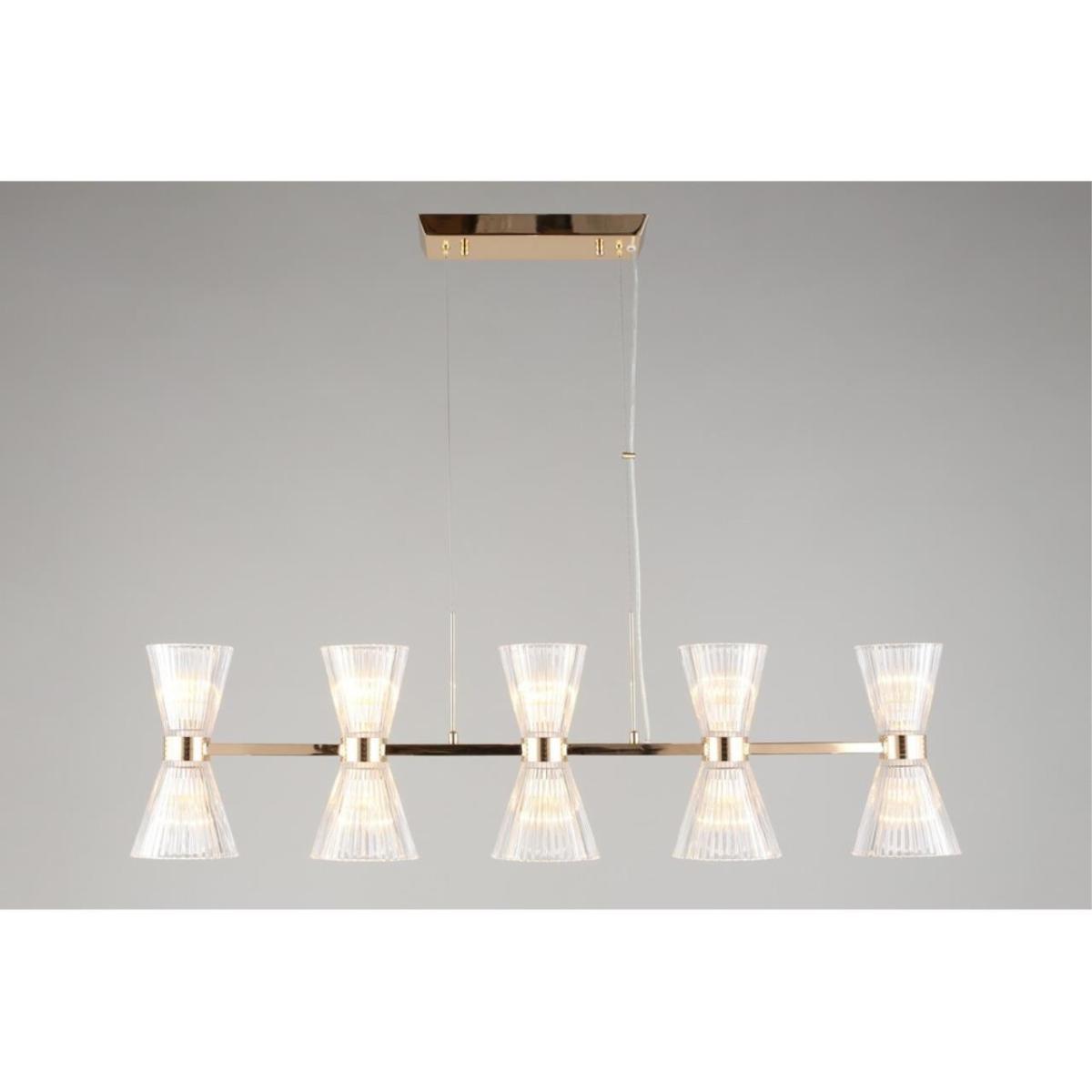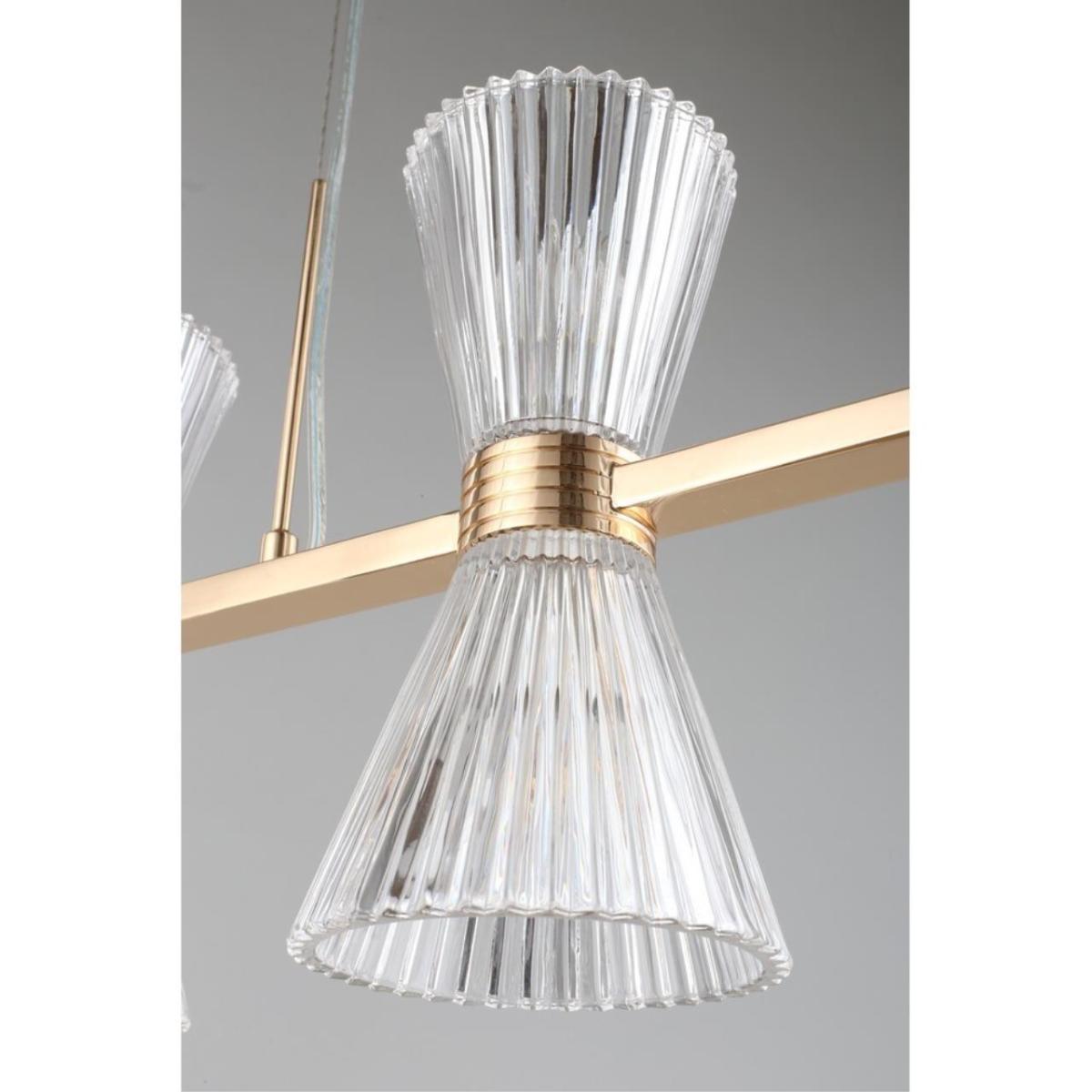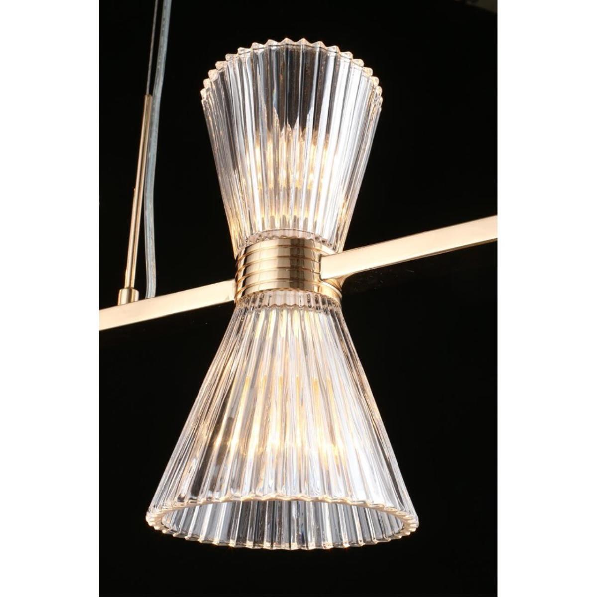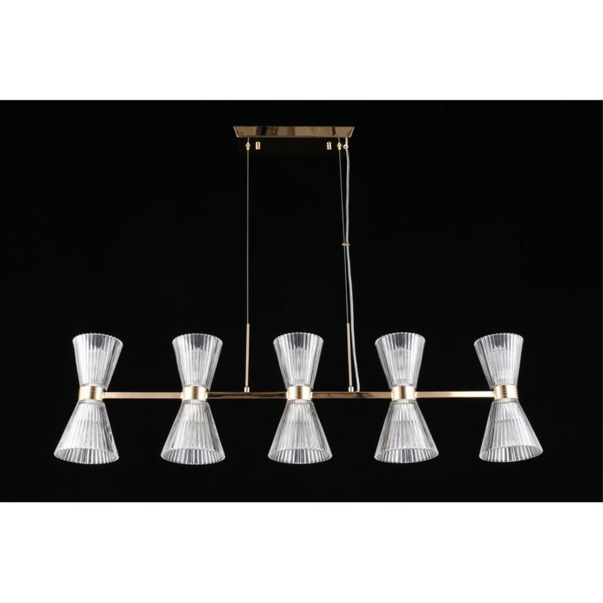 Aployt специализируется на декоративных светильниках с вниманием к деталям и качеству отделки, а серия Elinor отражает актуальный минимализм и уверенную работу со стеклом и металлом. Прозрачные конусные плафоны подчёркивают мерцание ламп и создают визуальную лёгкость, золото арматуры поддерживает тёплую атмосферу.