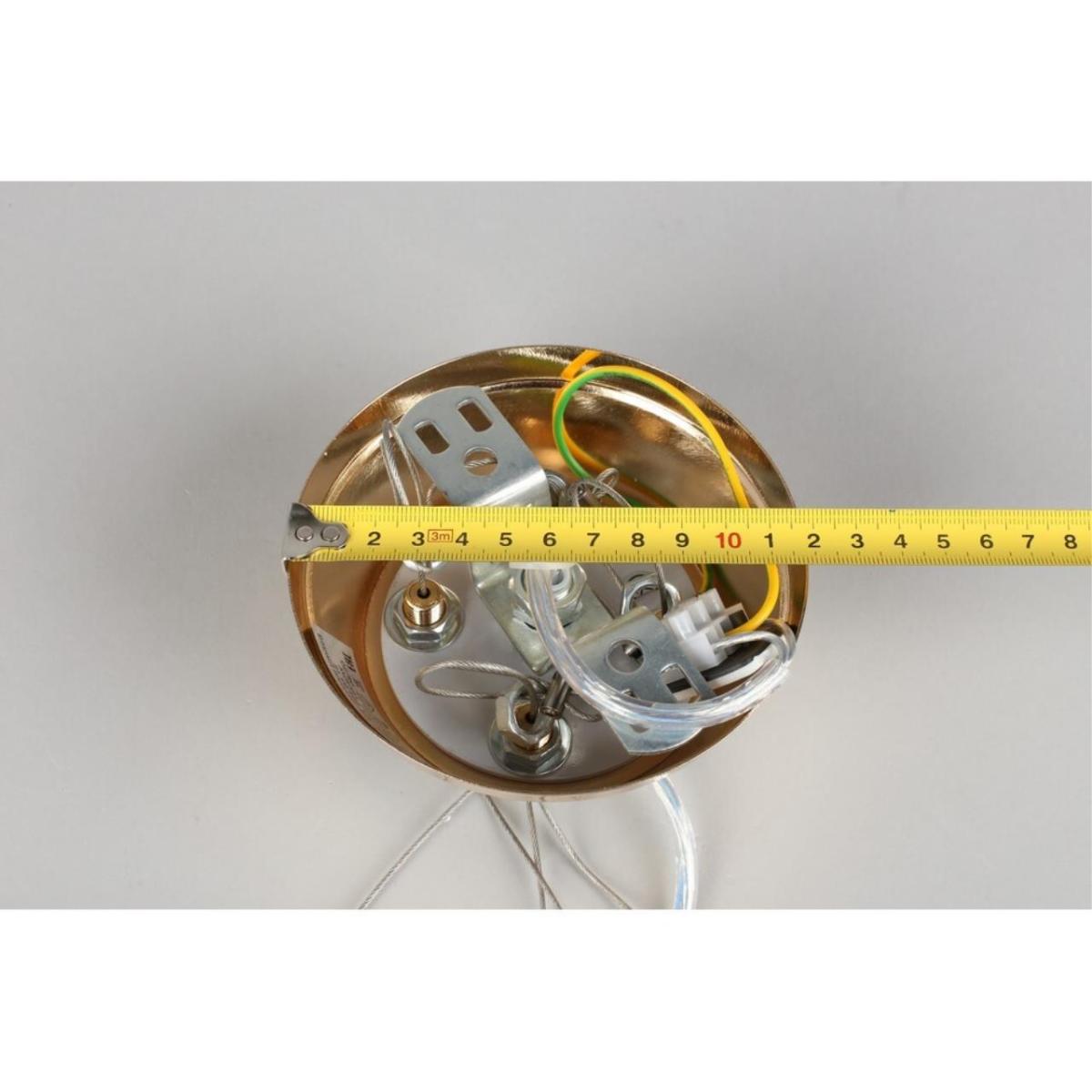 Внутри установлено 16 ламп с цоколем E14 по 40 Вт, суммарная мощность 640 Вт. Световой поток 6720 лм помогает равномерно заполнить помещение площадью до 32 м². Питание 230 В, степень защиты IP20. Конструкция рассчитана на монтаж на потолок и совместима с натяжными потолками.