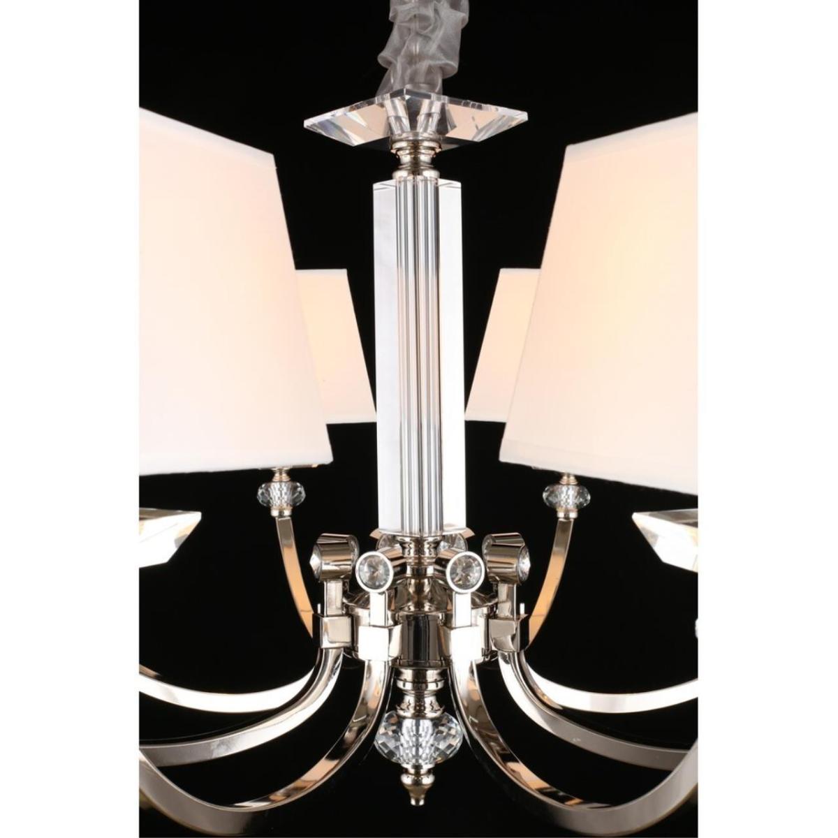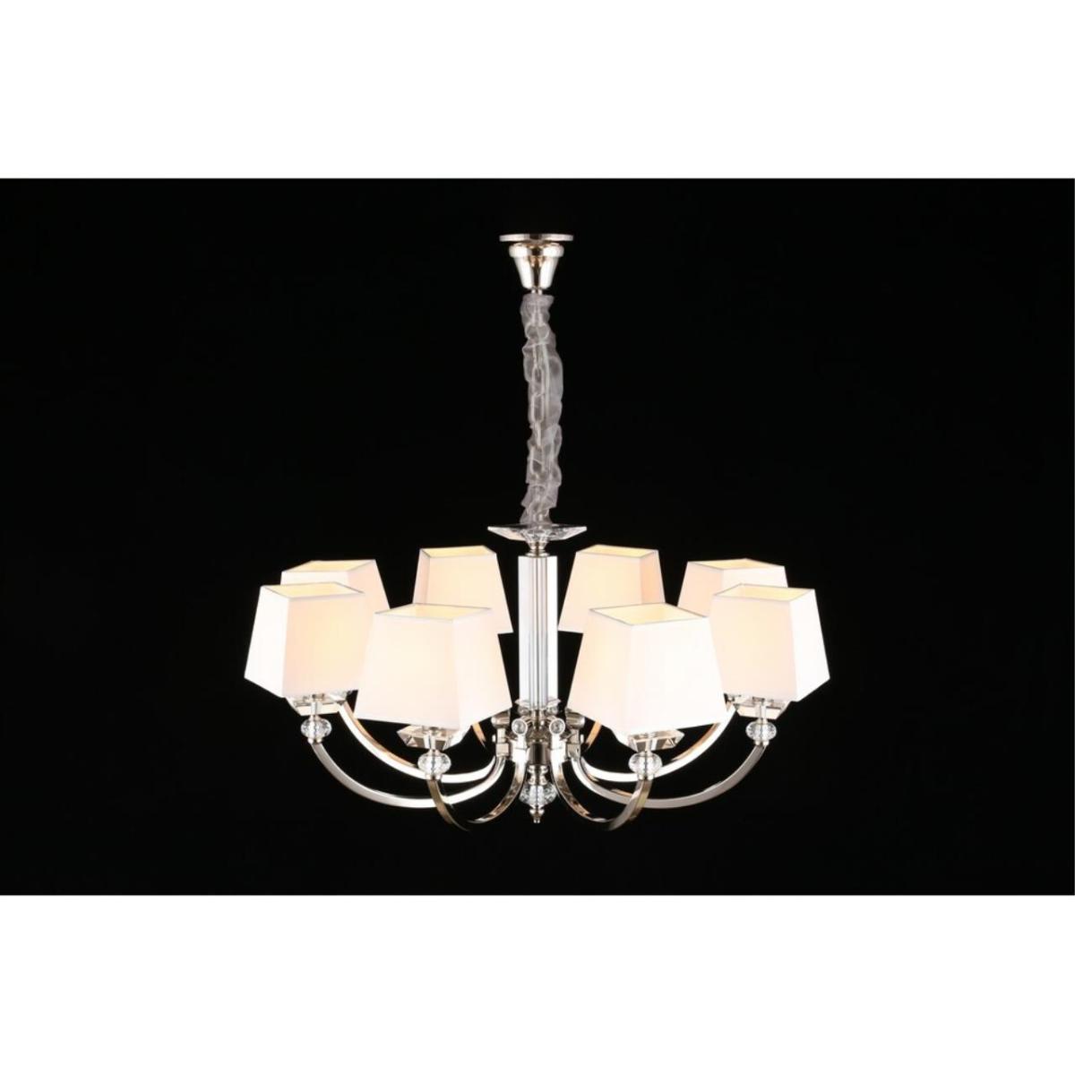 Подвесная люстра Aployt Gay APL.754.03.08 наполняет гостиную мягким, спокойным светом. Восемь бежевых текстильных абажуров направлены вверх, свет ложится ровно и уютно, подчёркивая фактуру стен и теплые оттенки мебели. Хромированная арматура поддерживает архитектуру формы: пирамидальные плафоны собираются в чистый силуэт диаметром 880 мм. Высота подвеса до 1200 мм подходит для разных сценариев размещения. Восемь источников E14 рассчитаны на лампы накаливания, свет мягкий и стабильный.