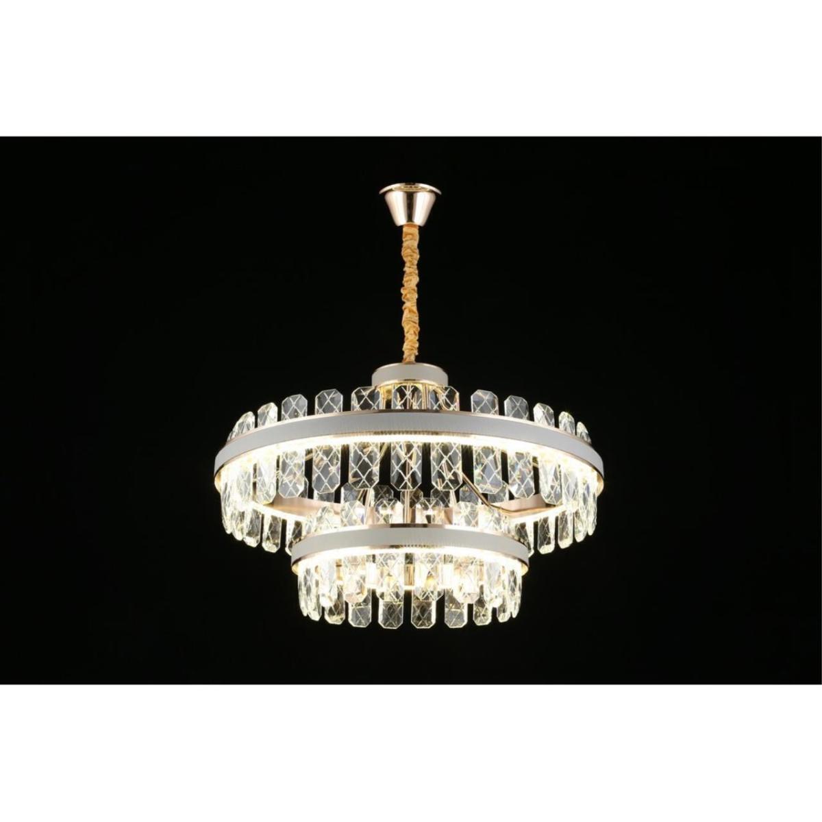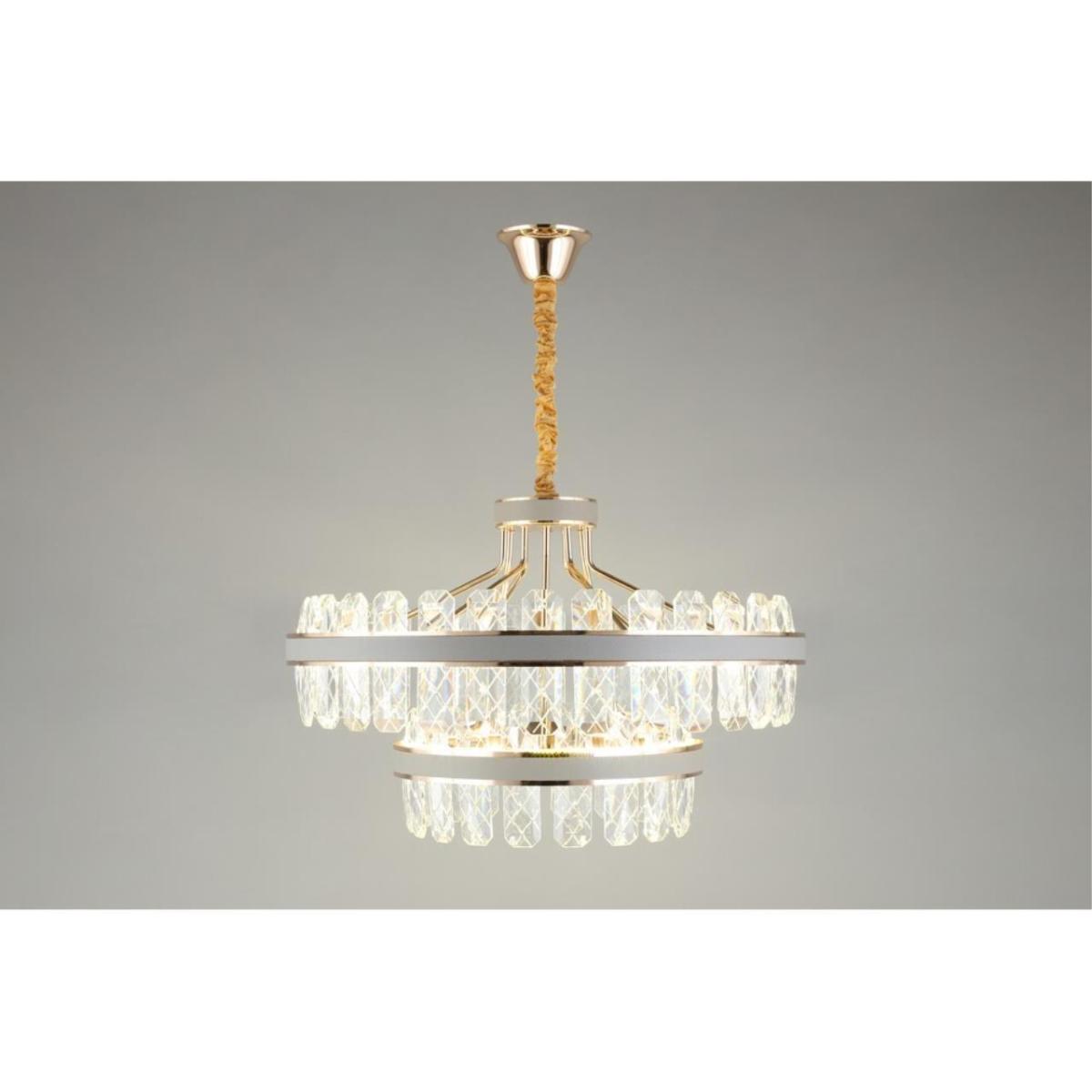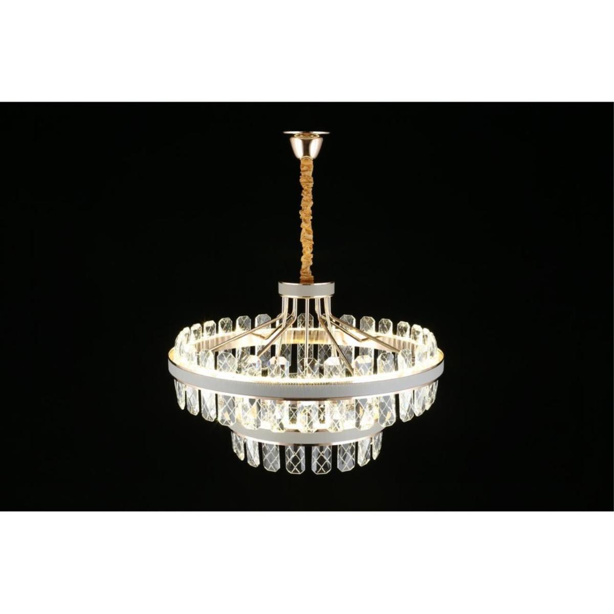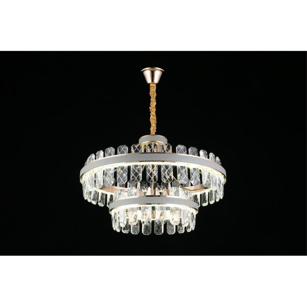 Светодиодный источник интегрирован, лампа в комплекте. Мощность 158 Вт, световой поток 8690 лм. Цветовая температура 3500/6500 К с оттенком от нейтрального до холодного. Направление света вниз, питание 220 В. Степень защиты IP20.