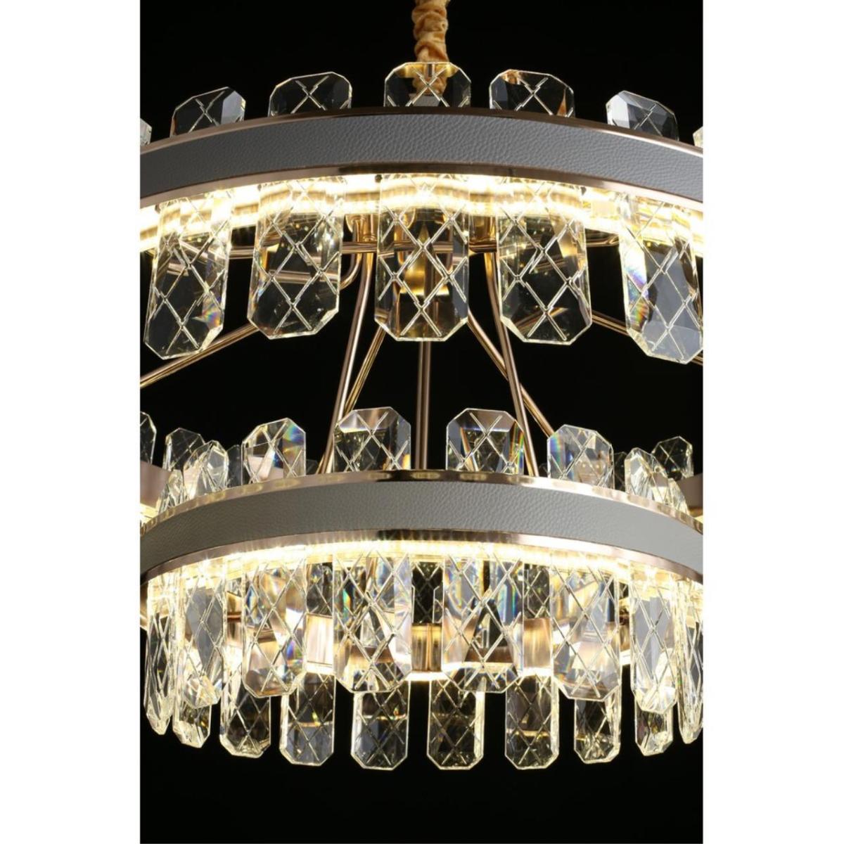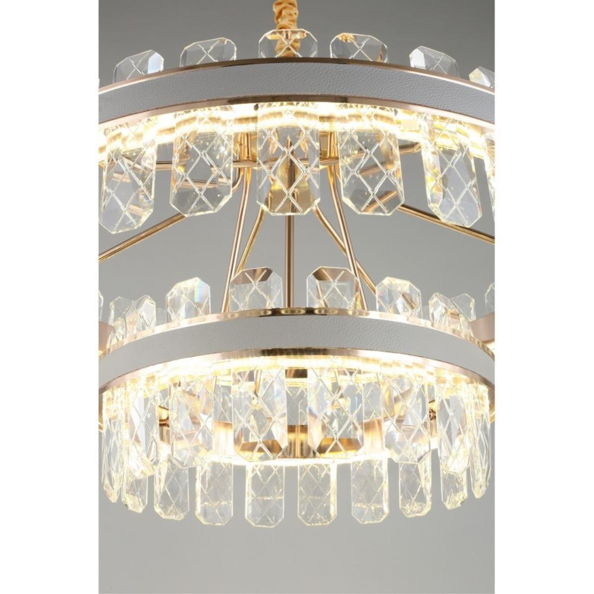 Подвесная люстра Aployt Juda APL.032.03.158 — современный светильник для потолочного монтажа в жилых интерьерах. Модель из коллекции Juda оснащена двумя кольцевыми плафонами из прозрачного хрусталя. Арматура выполнена из металла цвета золото, общий стиль — модерн.