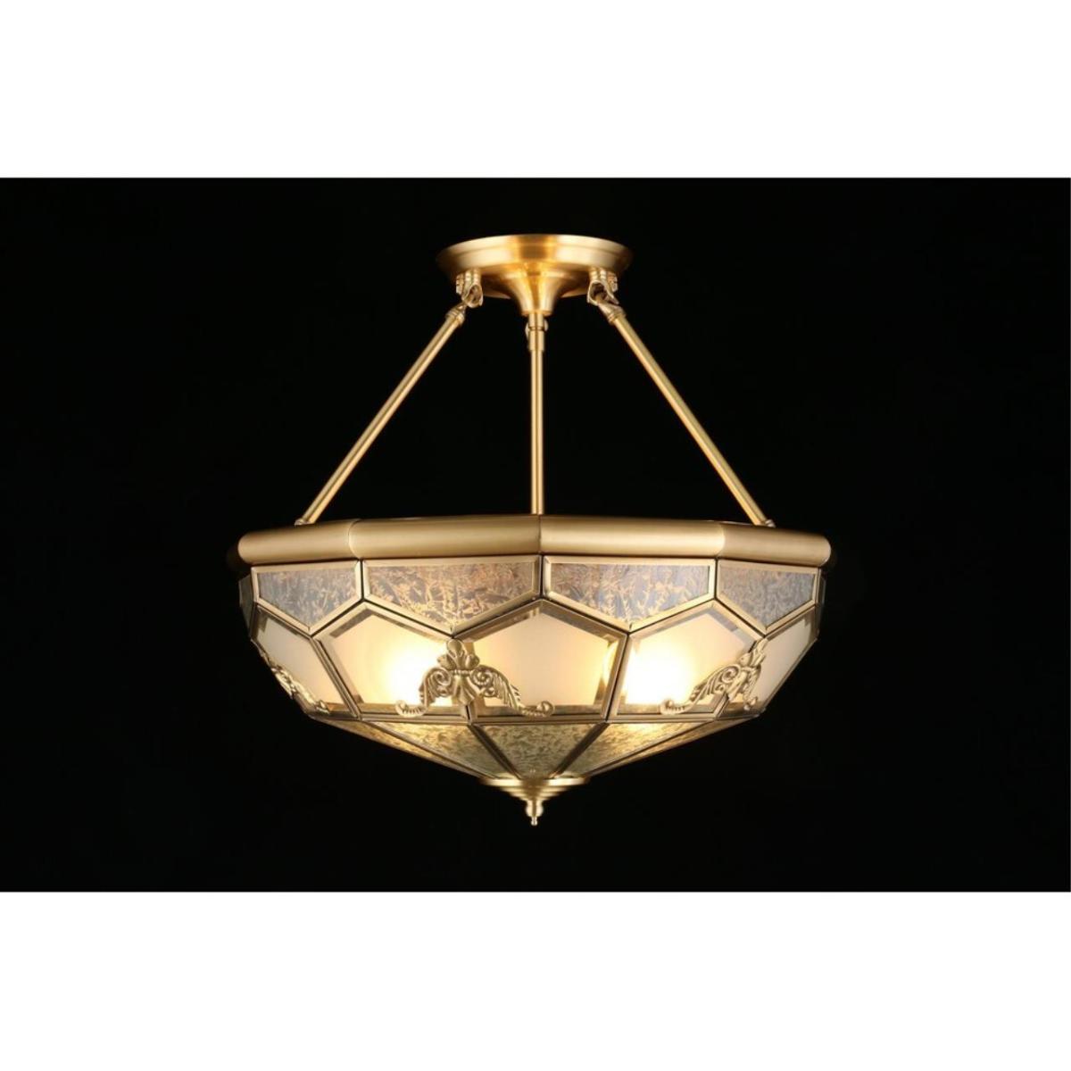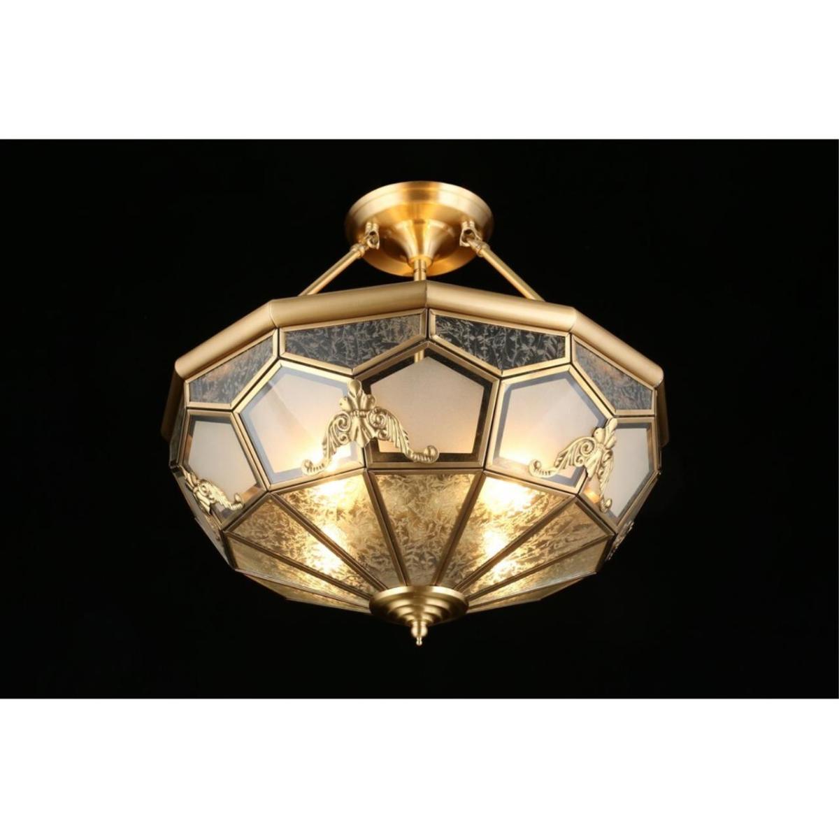 В основе светильника надежная арматура из металла в оттенке матового золота. Теплый благородный цвет гармонирует с современным интерьером и подчеркивает стиль модерн. Модель рассчитана на 4 лампы накаливания с цоколем E27 по 40 Вт, суммарная мощность 160 Вт. Такой ресурс хорошо раскрывает площадь до 8 м², подойдя для небольшой гостиной, зоны отдыха или локального света в центре комнаты.