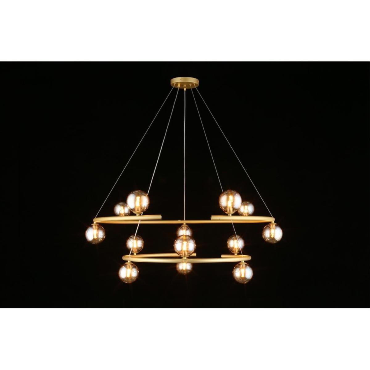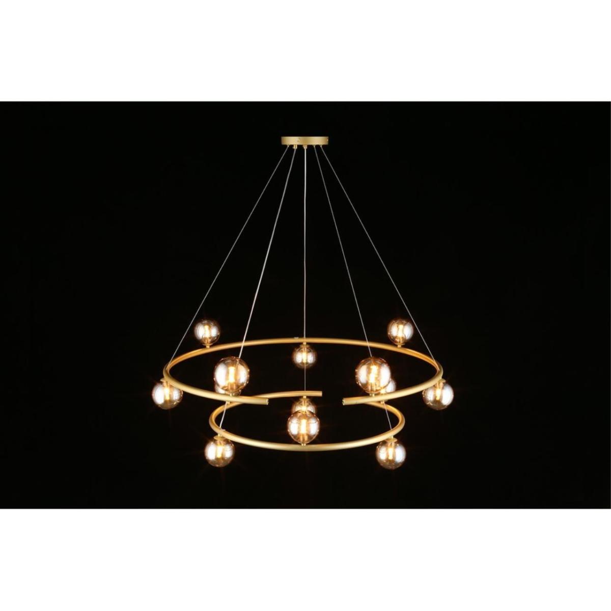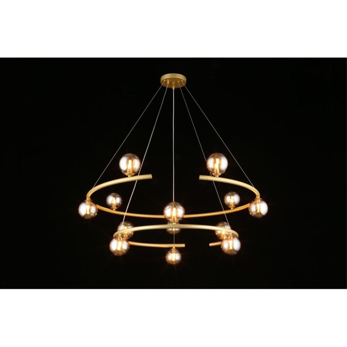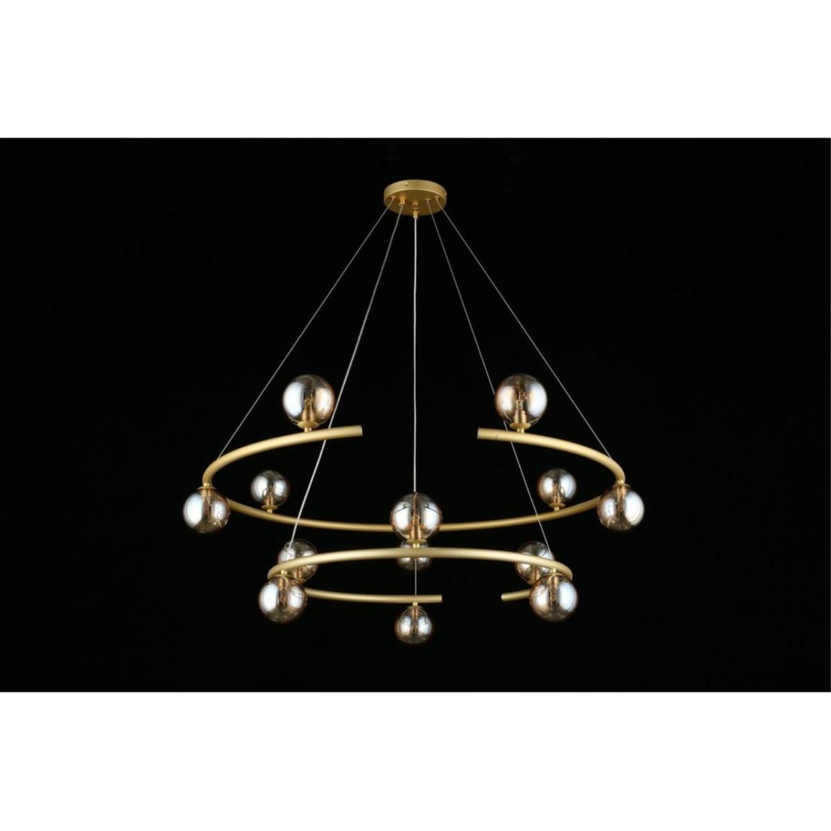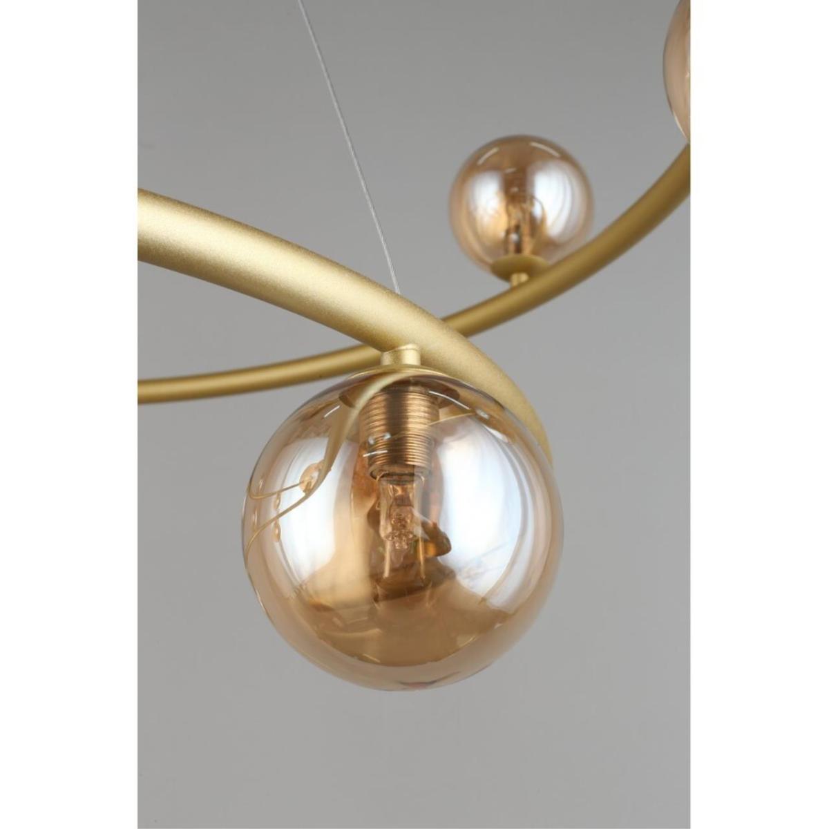 Подвесная люстра Aployt Polet APL.631.13.13 рассчитана на установку в большом зале. Арматура из металла в отделке матовое золото, плафоны из стекла янтарного цвета, форма шар. Плафоны направлены в стороны. Диаметр 900 мм, высота 600 мм. Монтаж на потолок.