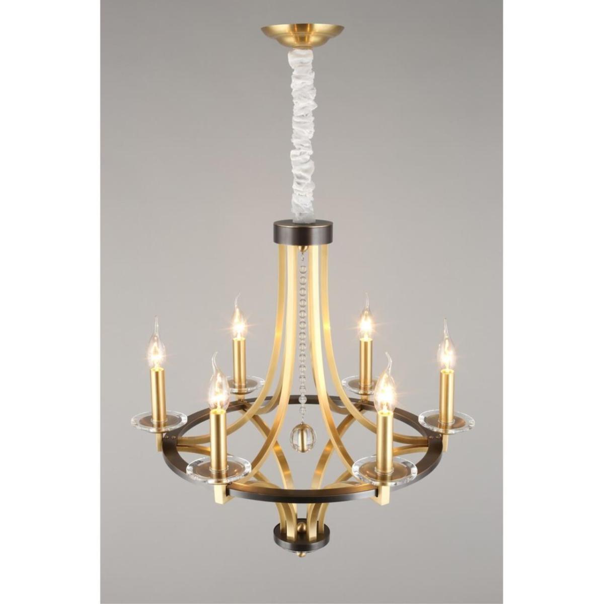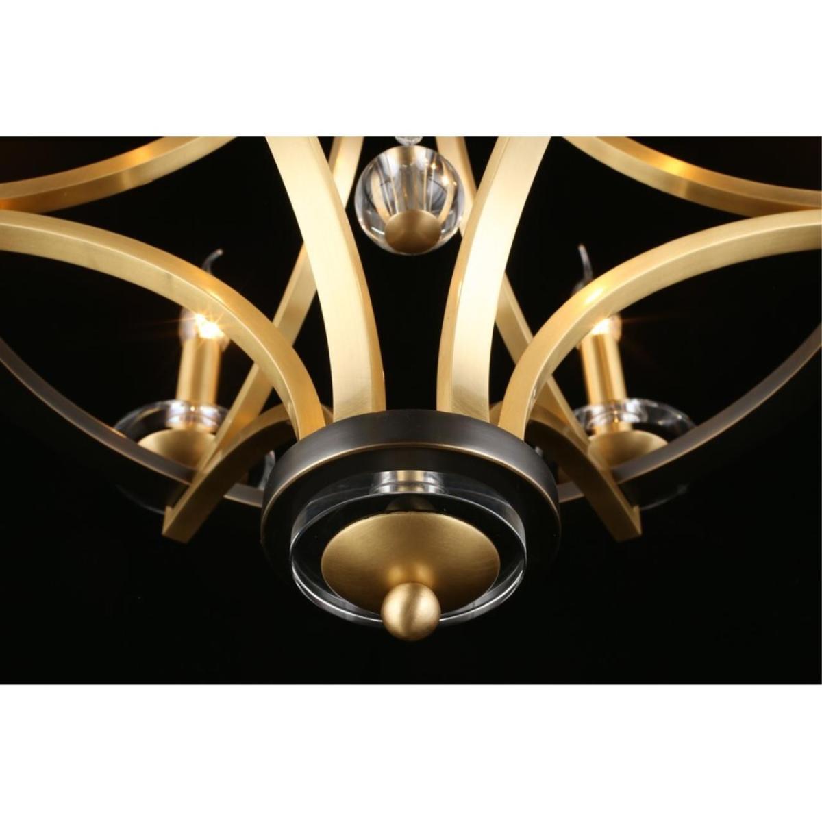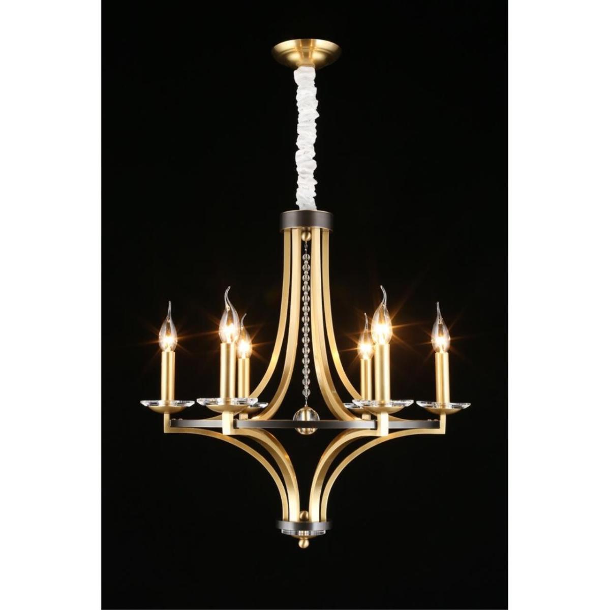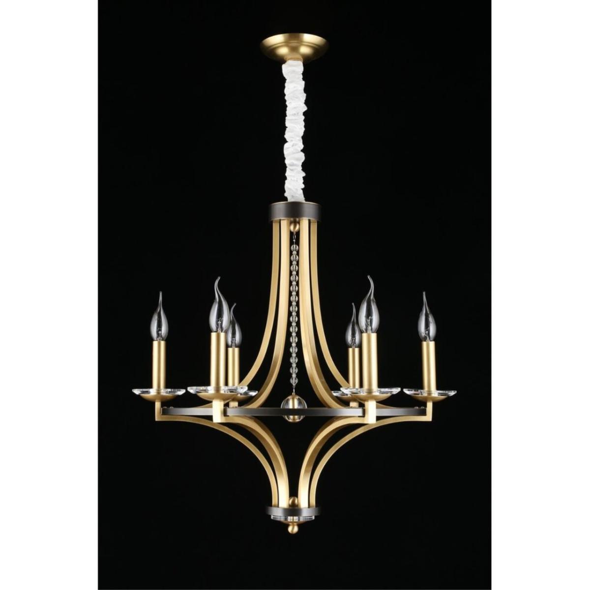 Подвесная люстра Aployt Wikta APL.805.03.06 создаёт атмосферу благородной классики. Шесть изящных рожков направлены вверх, матовое золото арматуры подчеркивает замковый стиль и мягко отражает свет.