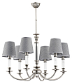 Подвесная люстра Kutek Napoli NAP-ZW-6 (N/A) создана для элегантной спальни в классическом стиле. Шесть конусных абажуров из серой ткани направлены вверх, свет мягкий и ровный для комнаты площадью до 12 м². Металлическая арматура цвета никель подчеркивает изящество коллекции Napoli.