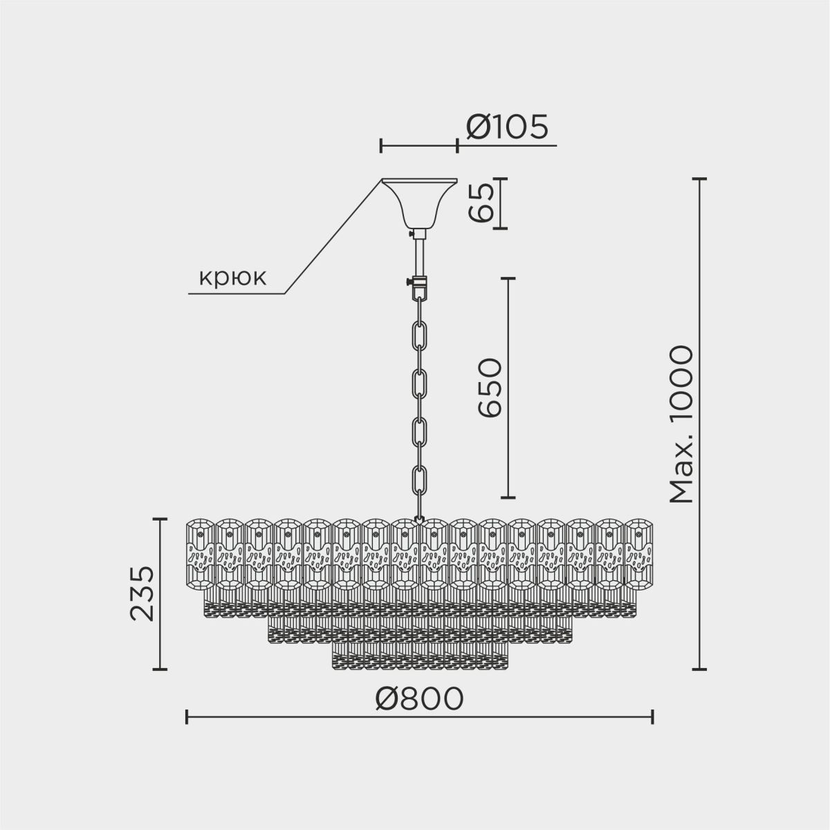 Длина подвеса в мм 600
