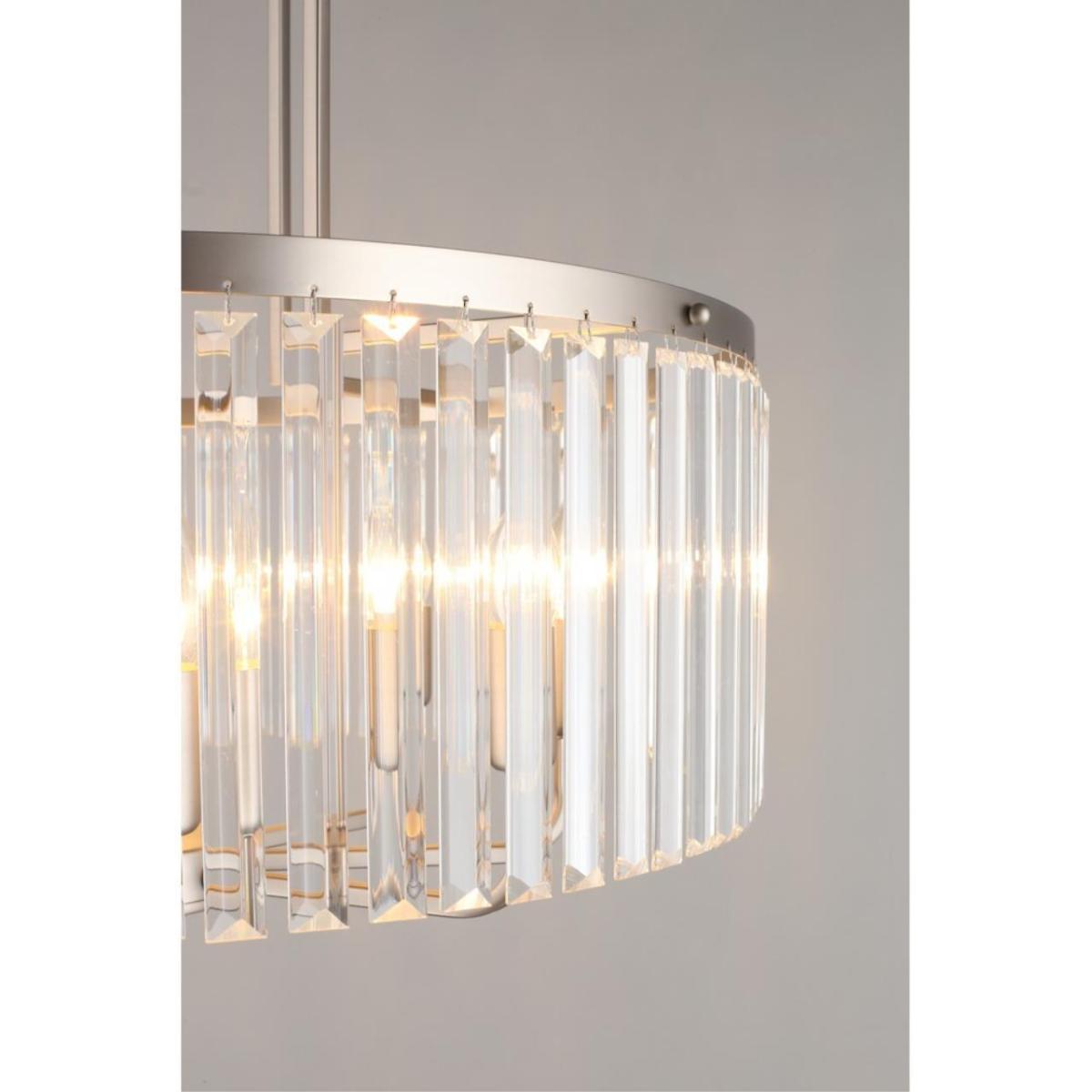 Подвесная люстра Omnilux Borno OML-66013-08 — выразительный акцент для современной гостиной. Прозрачный хрустальный цилиндр мягко рассеивает свет, а металл в цвете никель добавляет строгой элегантности.