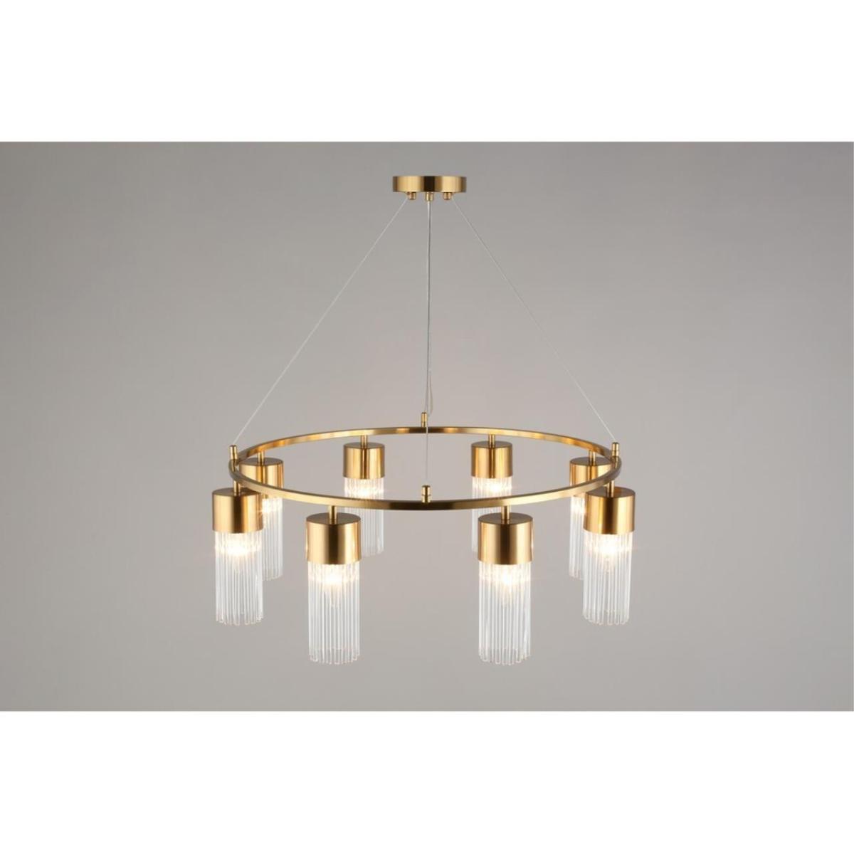 Подвесная люстра Omnilux Cesana OML-67103-08 создана для современных интерьеров, где ценят чистые линии и благородные материалы. Восьмерка цилиндрических плафонов из прозрачного стекла направляет свет вниз, давая яркое и ровное освещение зоны гостиной или обеденного стола. Латунная арматура из металла добавляет теплый акцент и поддерживает стиль модерн.