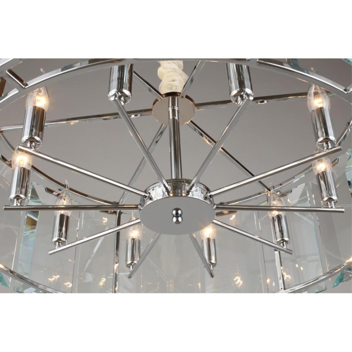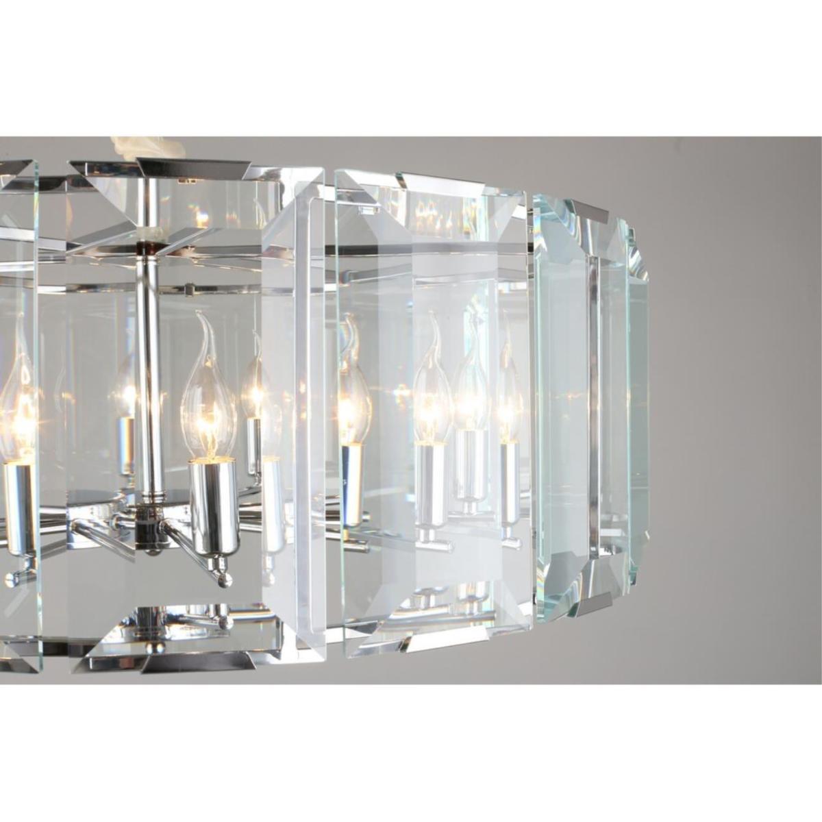 Подвесная люстра Omnilux Noventa OML-81513-10 — светильник классического стиля для установки на потолок в спальне. Модель из коллекции Noventa выполнена с металлической арматурой в хроме и прозрачным хрустальным плафоном цилиндрической формы. Свет направлен вверх.