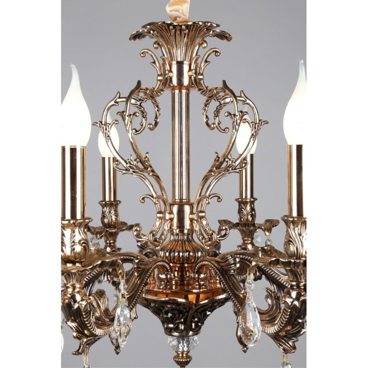 Подвесная люстра Omnilux Senis OML-74703-06 создана для ценителей классики и уютной атмосферы в спальне. Металлическая арматура цвета золота формирует изящный силуэт, свет направлен вверх, плафонов нет - получается мягкое отраженное свечение без бликов.