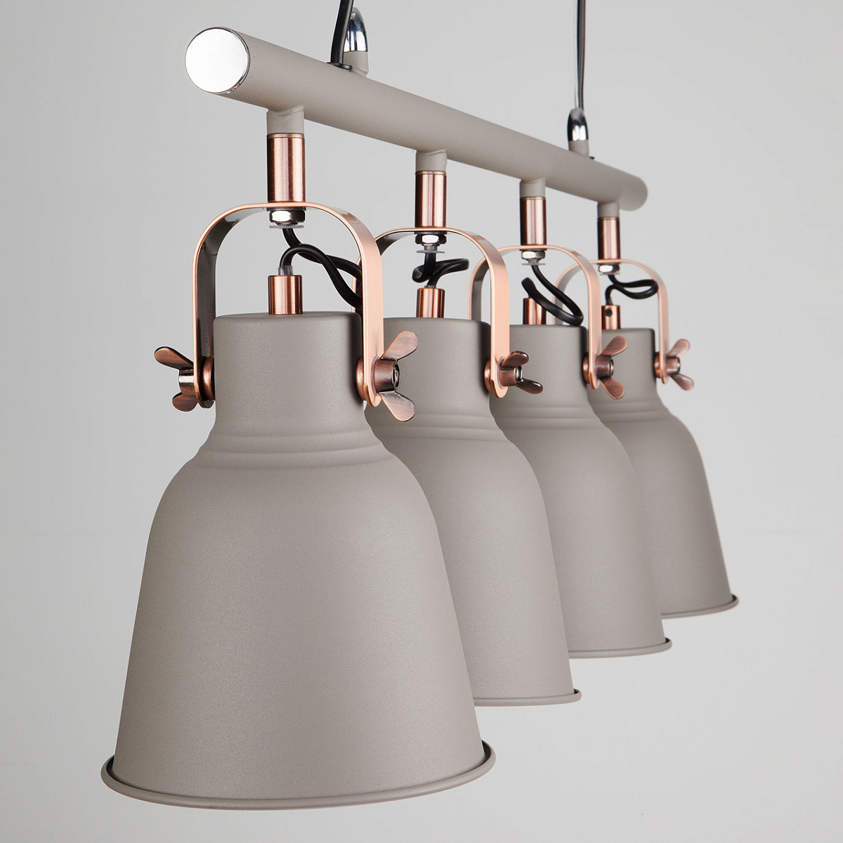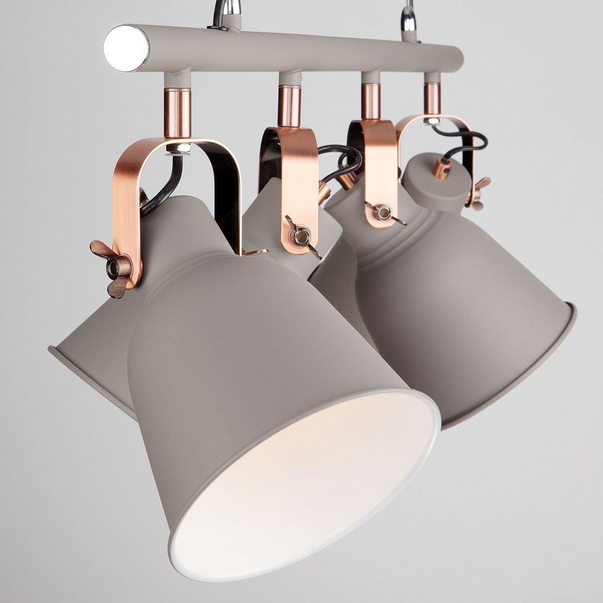 Подвесной светильник Eurosvet Projector 50083/4 серый отвечает регламентированным стандартам качества: лампы накаливания, цоколь E27, 4 лампы, цвет арматуры медь. Этот осветительный прибор подходит для кухни в стиле лофт. Качество, которым характеризуется модель, гарантирует длительный срок службы. Устройство обеспечивает площадь освещения в 13 кв.м.