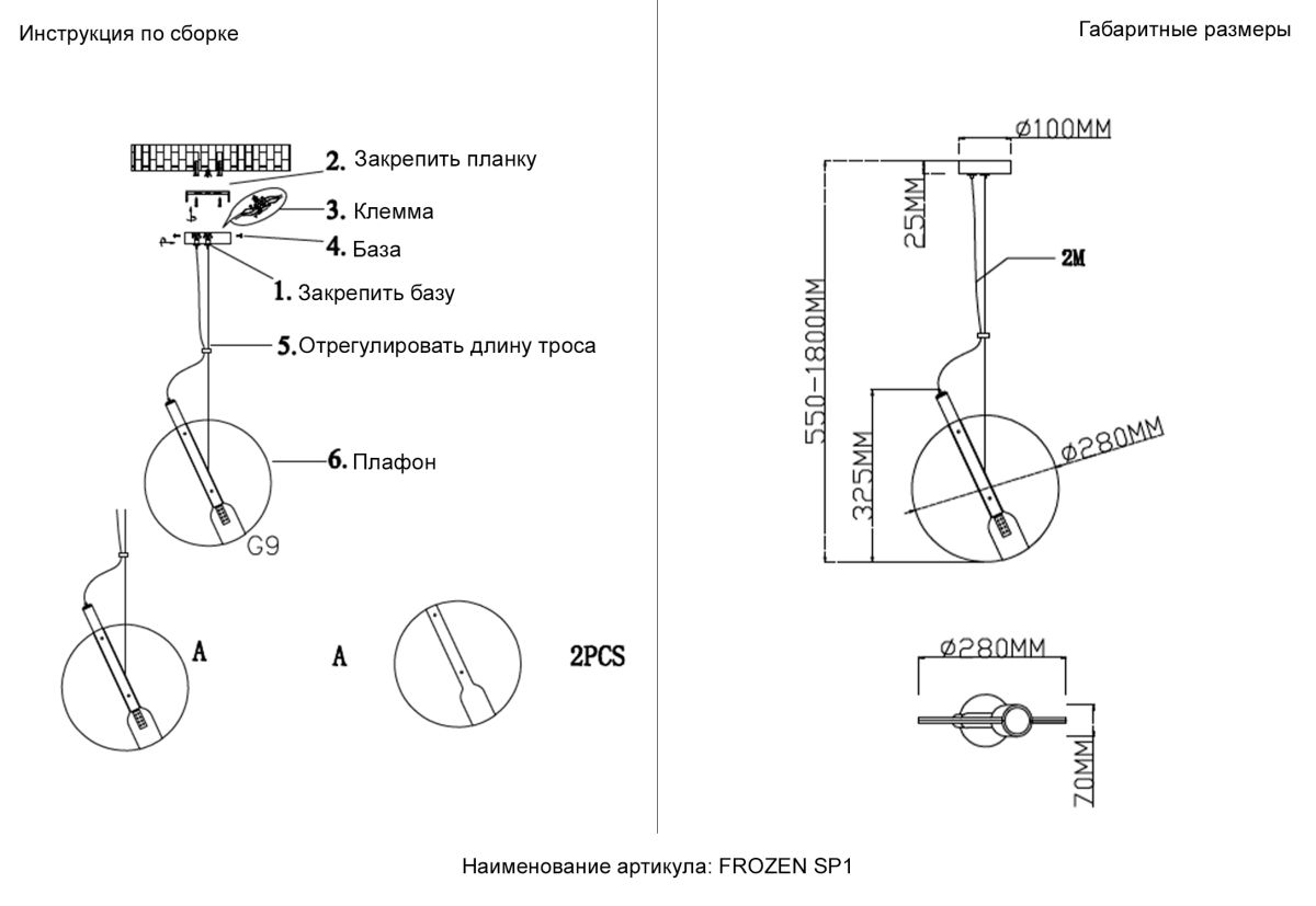 Длина подвеса в мм 1800