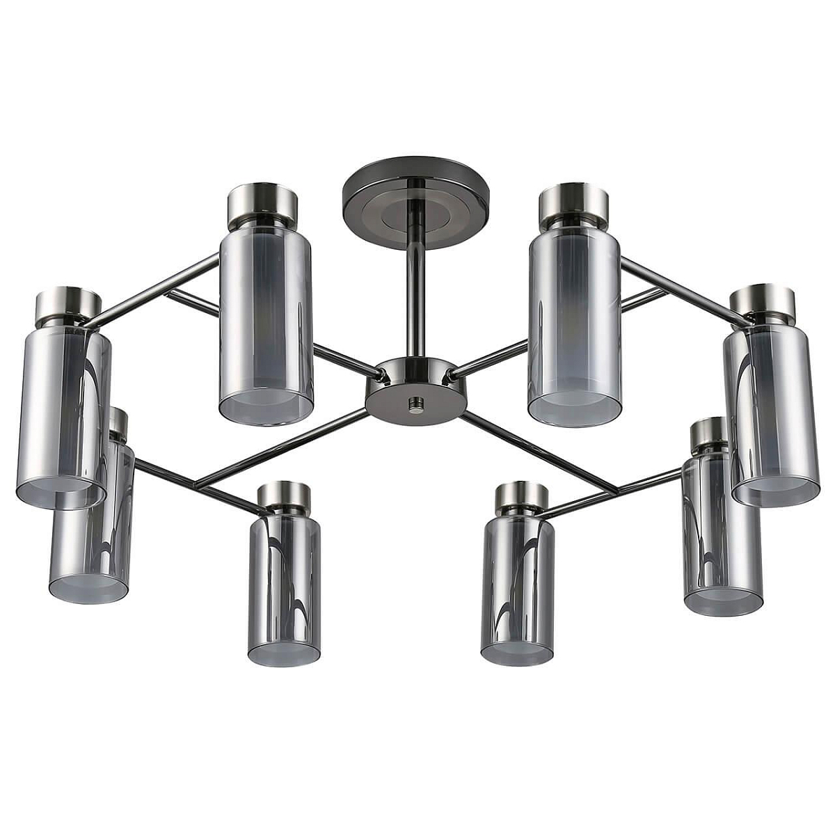 Потолочная люстра Escada 1115/8PL приносит в интерьер ясность и порядок линий. Восьмерка стеклянных цилиндров из дымчатого стекла направлена вниз, свет проходит через полупрозрачные плафоны и становится мягче, сохраняя выразительность фактур на столешнице и фартуке. Хромированная арматура и строгая геометрия подчеркивают стиль хай-тек, а компактная штанга удерживает композицию легкой и собранной.